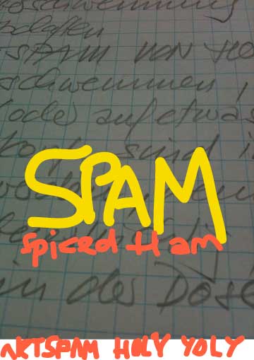 ARTSPAM HOLY YOLY - diese Spans überschwemmen, lenken die eigenen Gedanken ab oder auf etwas Neues, füllen den Kopf, sind immer unangemeldet aber werden, wenn täglich genossen, überlebenswichtig wie der SPAM / Spiced Ham in der Dose.